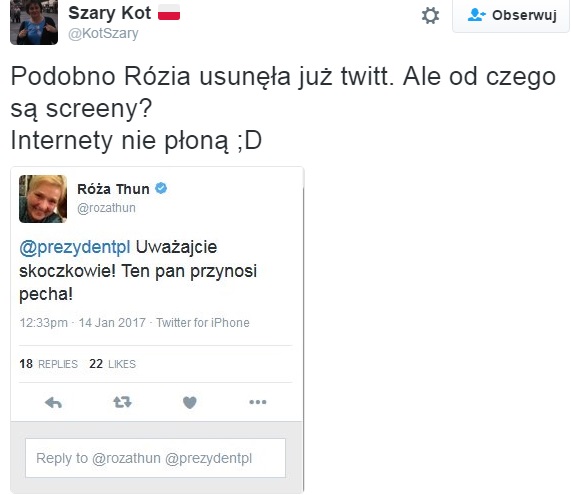 Eurodeputowana Platformy Obywatelskiej, Róża Thun należy do polityków najbardziej aktywnych na portalach społecznościowych, ale również... Tych, którzy napiszą coś na Twitterze, zanim dobrze się zastanowią.
