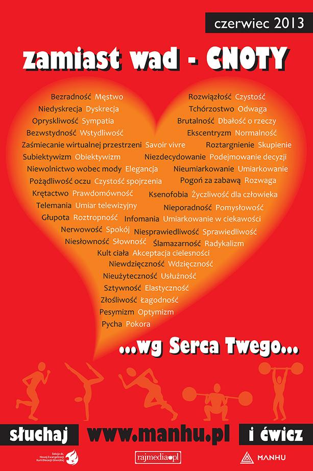 Inicjator akcji ks. Artur Sepioło, Koordynator Ruchów, Wspólnot i Stowarzyszeń Diecezji Gliwickiej, chce tym działaniem zachęcić księży do nowego podejścia do nabożeństw czerwcowych oraz ożywienia w tym duchu kazań na mszach. – Kult Serca Jezusowego wydaje się być dzisiaj coraz bardziej nierozumiany. Idea Jezusowego Serca nabiera swoistej wirtualności. My z pomocą wirtualnej przestrzeni chcemy odkryć na nowo jej znaczenie. „Zamiast wad – cnoty… według Serca Twego” to świetny sposób na ułatwienie naśladowania Jezusa wszystkim zabieganym.– wyjaśnia Rafał Janus, szef MANHU, serwisu udostępniającego codzienną refleksję.