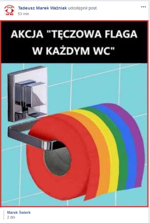 W Polsce słyszymy coraz więcej głosów domagających się wywieszania tęczowych flag w przestrzeni publicznej. Te same osoby, które z wielkim zaangażowaniem walczą z symbolami religijnymi w miejscach publicznych, bo jak przekonują, nie wszyscy Polacy są wierzący; z równie ogromnym zapałem walczą o wywieszanie symboli LGBT. Najwyraźniej zapominają, że nie wszyscy Polacy, w tym nie wszyscy Polacy o odmiennej orientacji seksualnej, utożsamiają się z ruchem LGBT. Tymczasem całe zamieszanie z przymrużeniem oka komentują internauci: