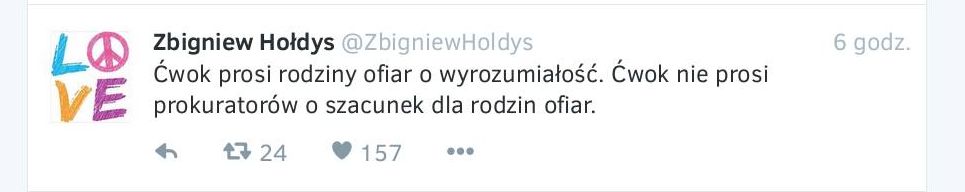 Hołdys natomiast na swoim Twitterze, publicznym przecież, umieścił tego typu wpis: